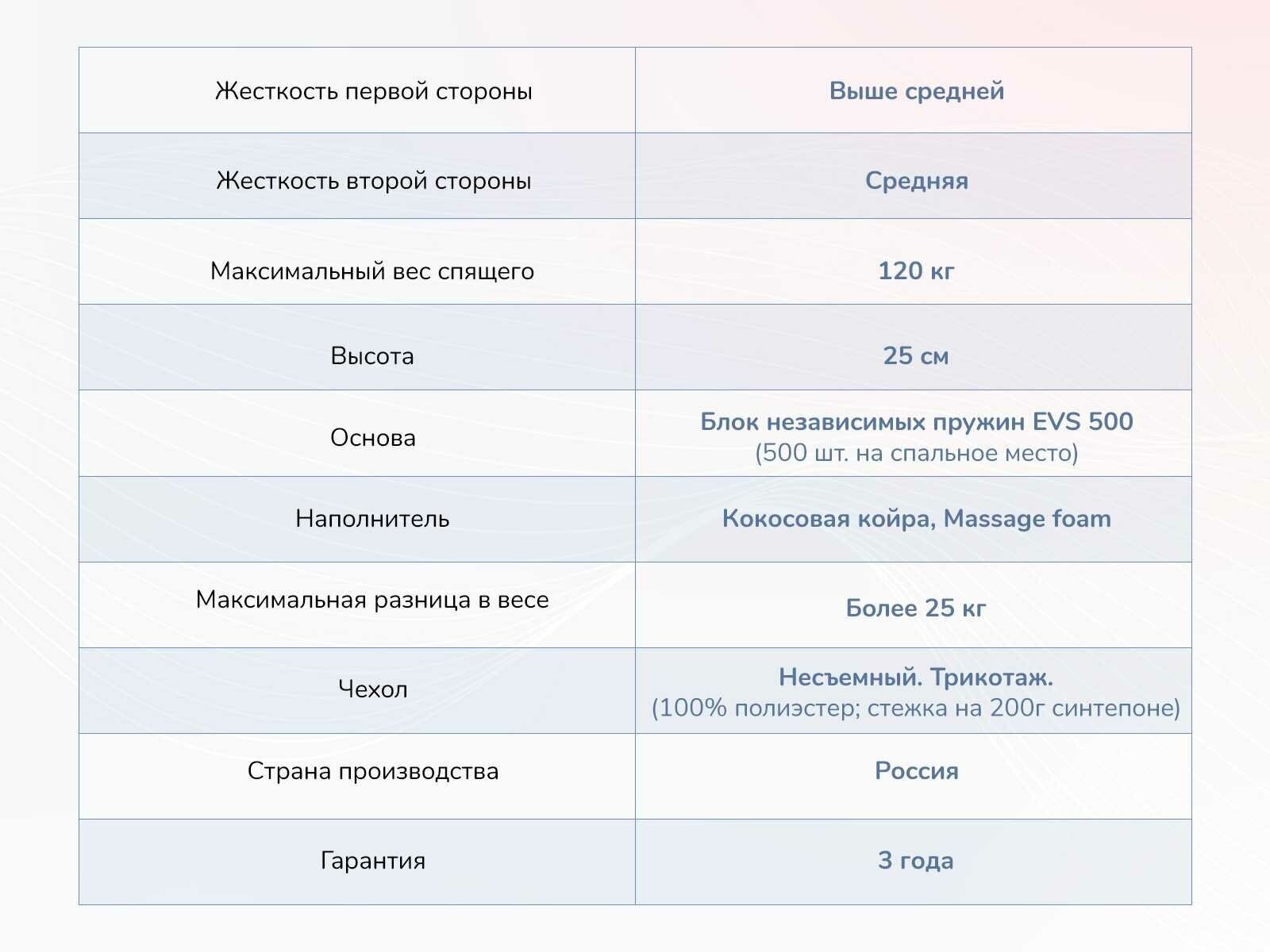 | Жесткость | низкая / средняя (1/3), двусторонний |