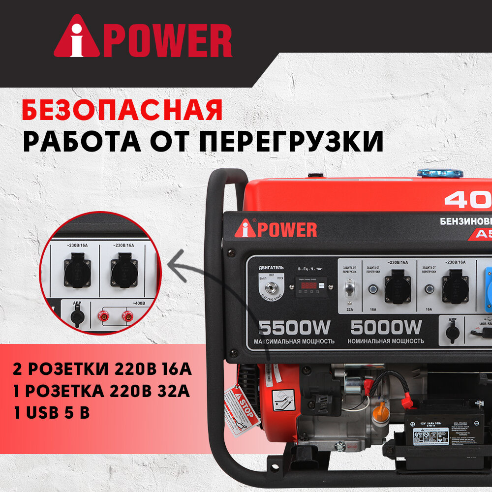 Генератор бензиновый A-iPower A5500EA (5кВт, 230В/50Гц, электростартер, разъем ATS)