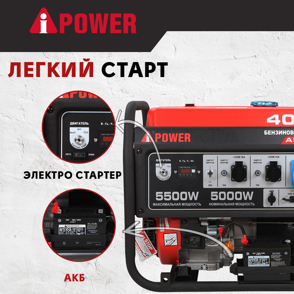 Генератор бензиновый A-iPower A5500EA электростартер 5,5 кВт 230 В. Генератор для дачи 68 189 ₽ Подробнее