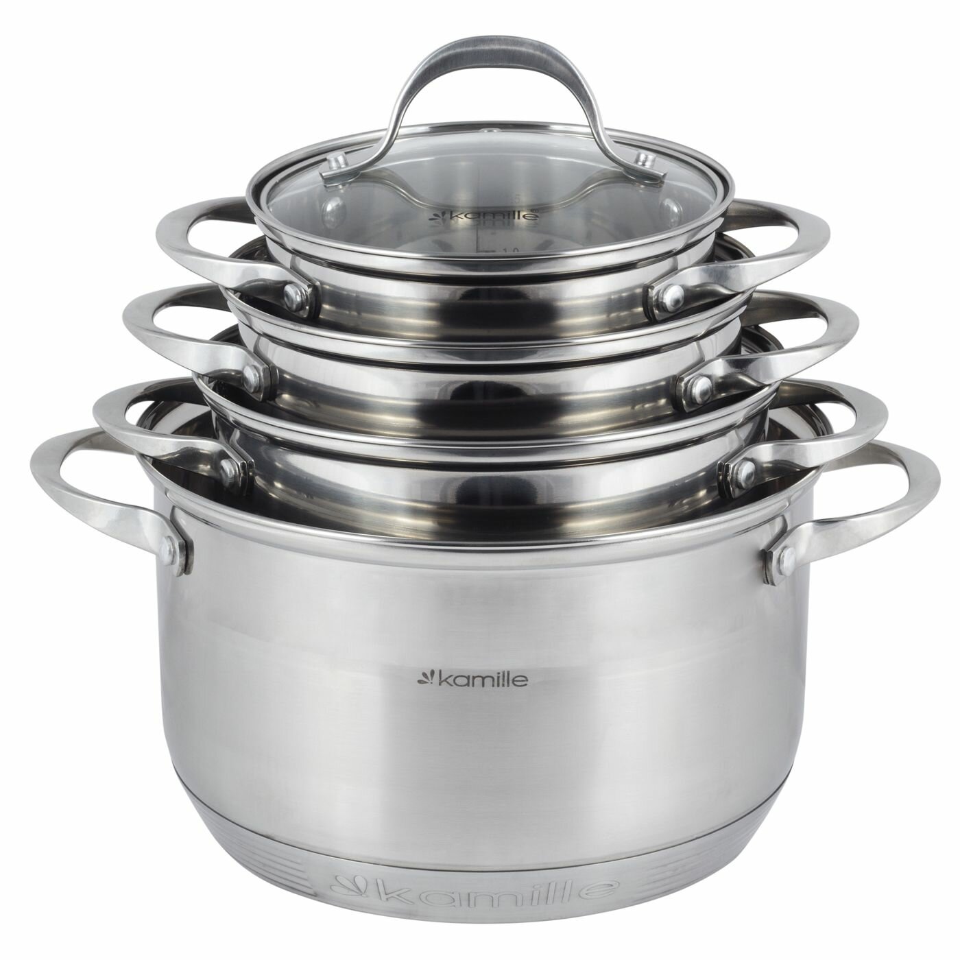 Набор посуды 10 предметов из нержавеющей стали Kamille KM-4710S (ковш 1,8 л; кастрюли 1,8 л; 2,3 л; 3,3 л; 5,8 л; 7-слойное дно) (2)