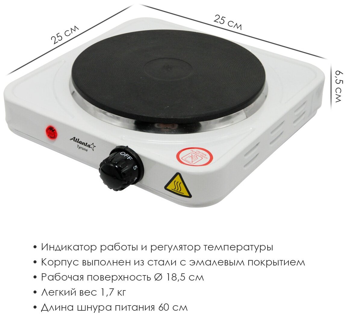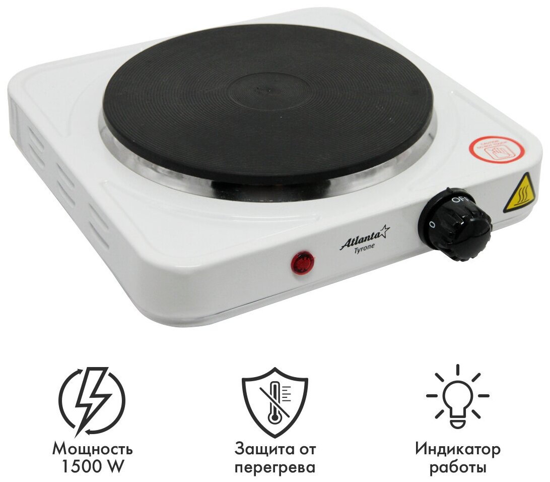 Электроплита Atlanta - 1 конфорка, 1000Вт, диаметр-15см, белая, 1 шт.