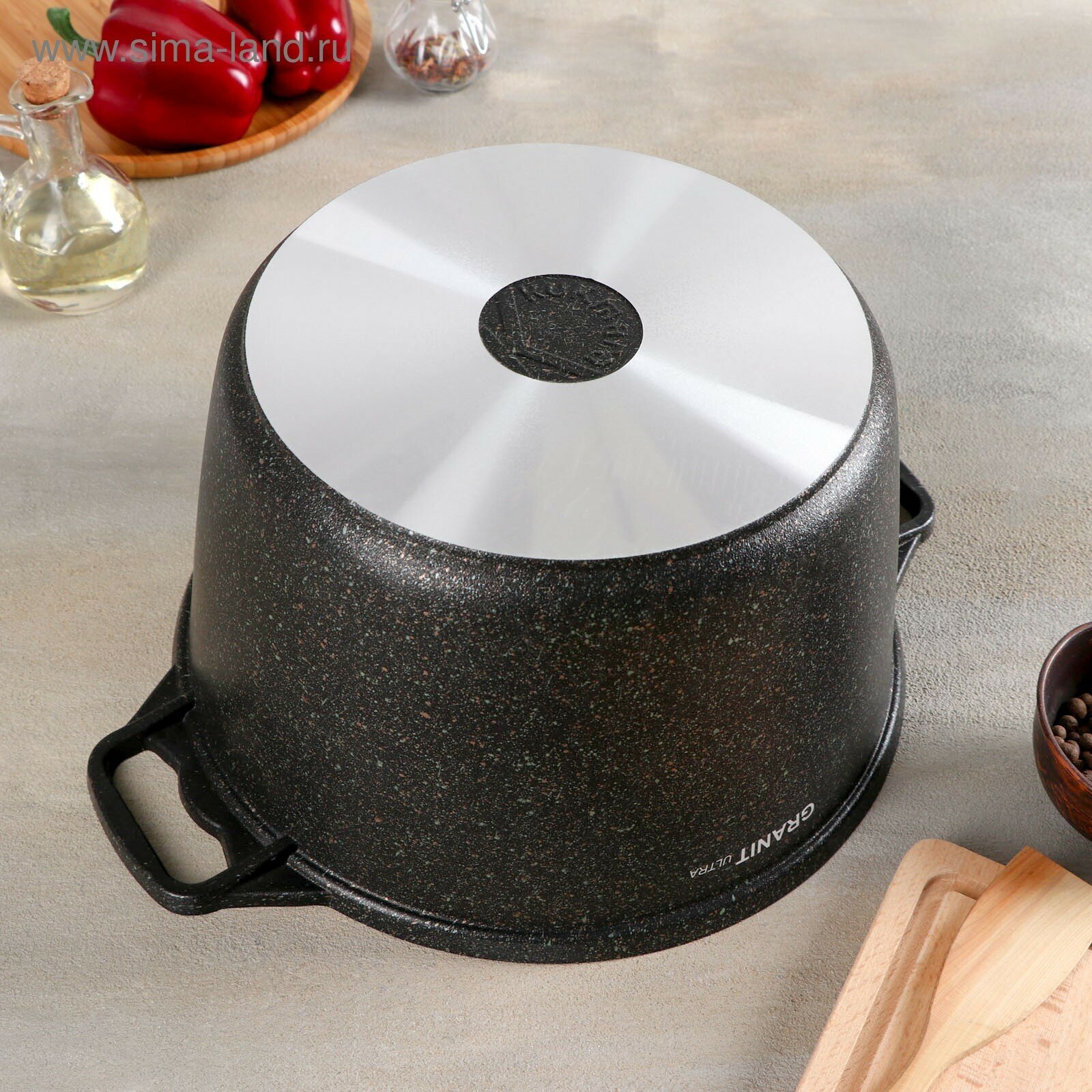 Кастрюля KUKMARA Granit ultra, 8 л, d=30 см, h=25 см, антипригарное покрытие, коричневая