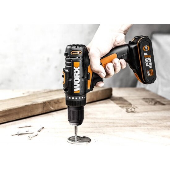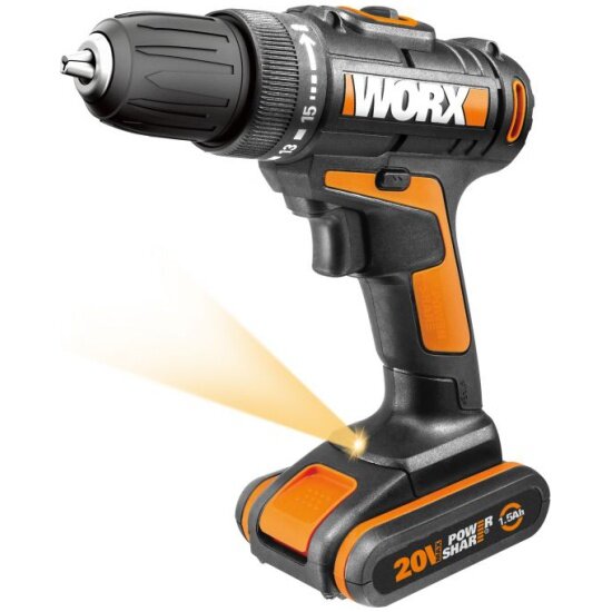 Worx Дрель-шуруповерт аккумуляторная Wx101.1, 30Нм, 20В, АКБ x2 1,5Ач, ЗУ 0,4А, кейс [wx101.1]