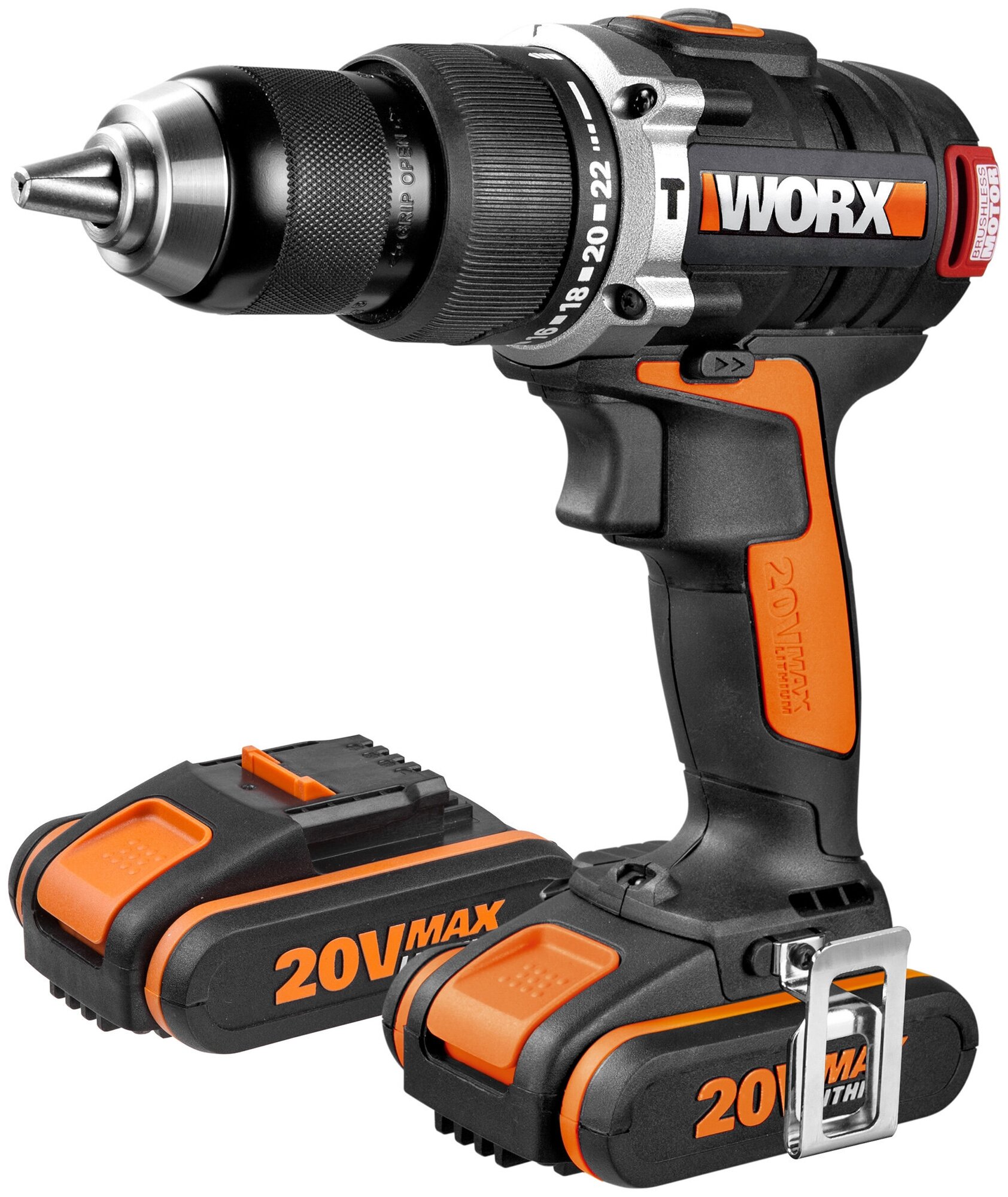 Дрель-шуруповерт ударная WORX WX373 20V 60Нм бесщеточная аккумуляторная с двумя 2Ач батареями, 2А зарядкой и кейсом