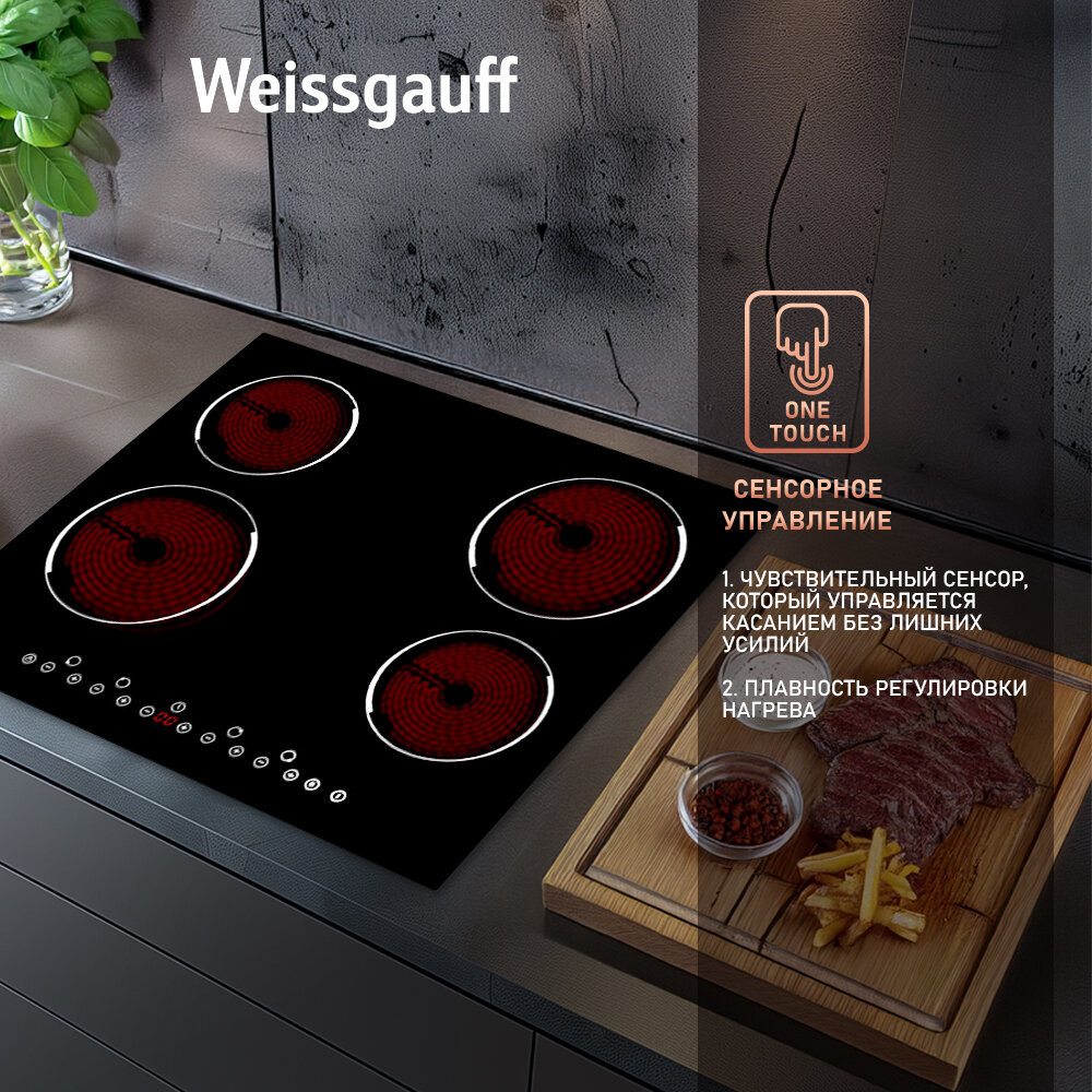 Варочные поверхности Стеклокерамическая панель Weissgauff HV 640 B Сенсорное управление One Touch, 3 года гарантии, 58 см ширина, таймер, блокировка от детей