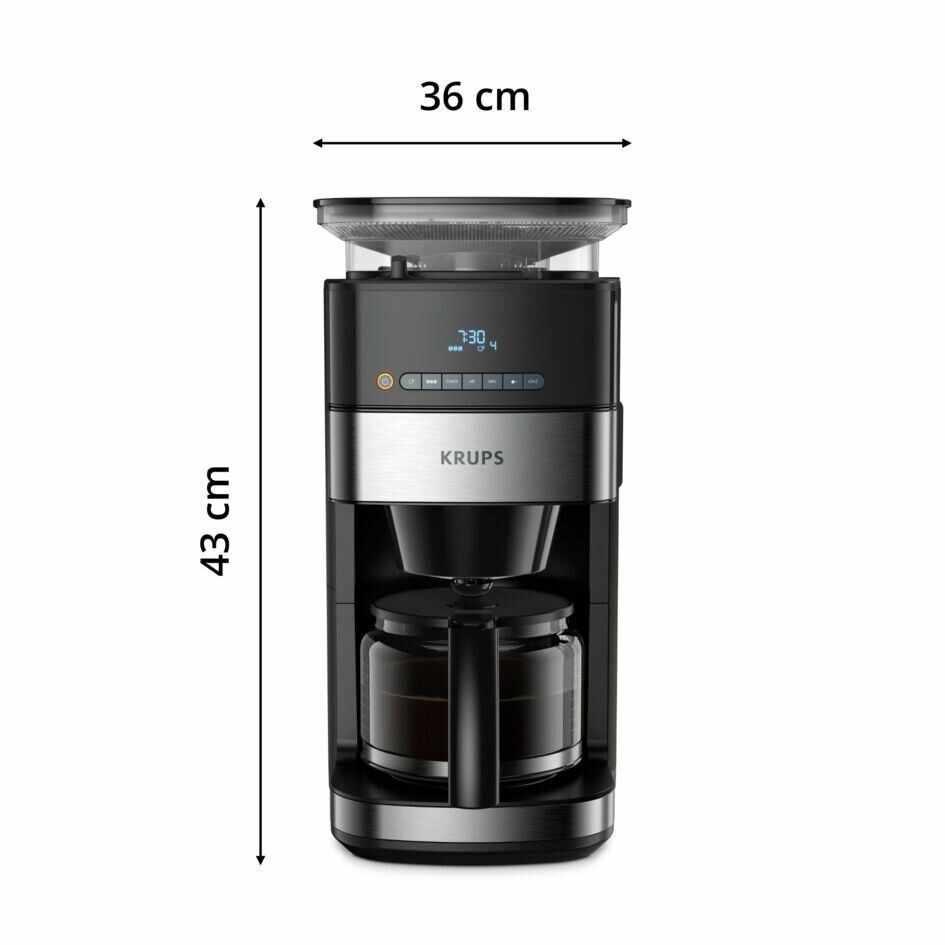 Кофеварка капельная Krups Grind Aroma KM832810, таймер, 3 степени помола, поддержание температуры 30 мин, черный