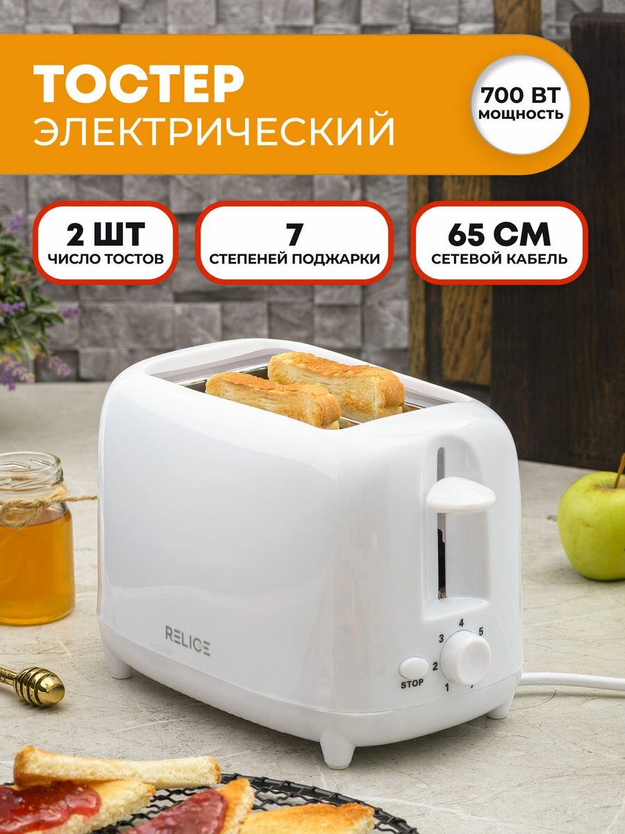 Тостеры, бутербродницы и вафельницы Тостер RELICE RL-304 на 2 тоста, белый