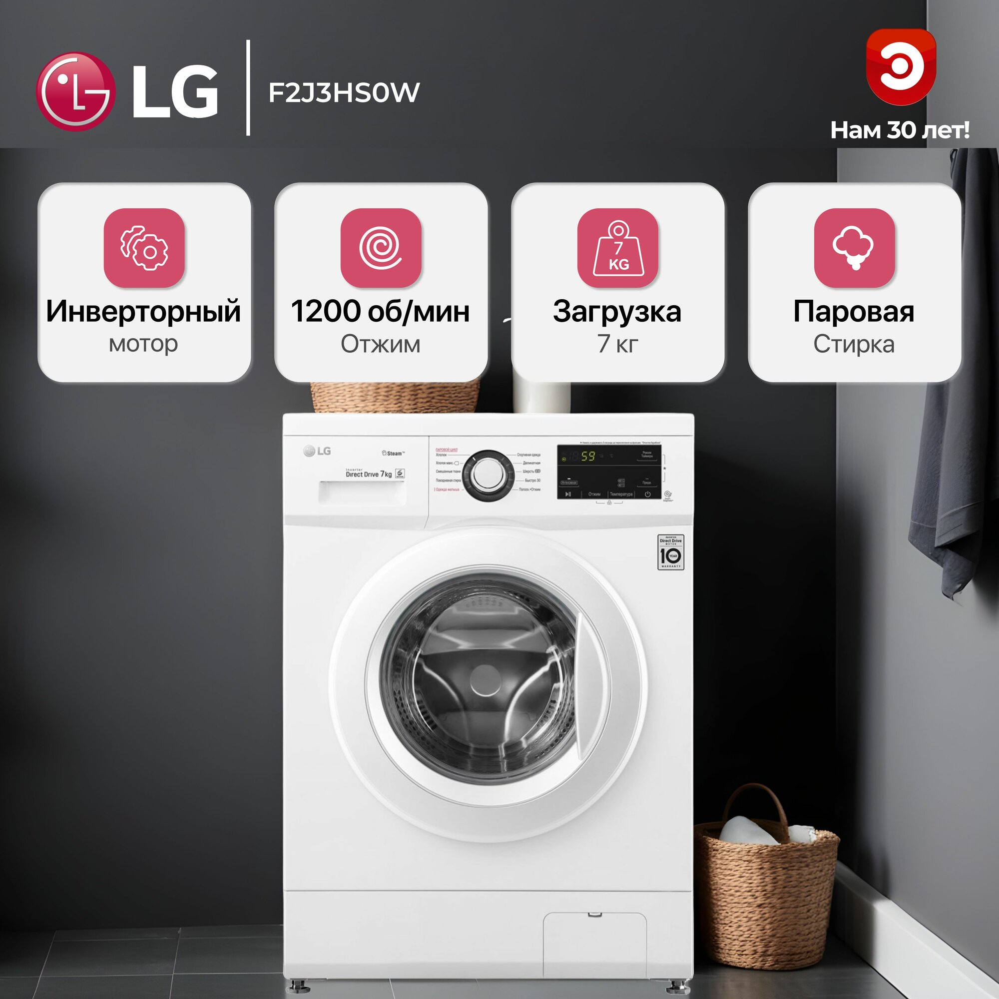 Узкая стиральная машина LG F2J3HS0W, 7 кг, с функцией пара, 6 вариантами вращения барабана, инверторным мотором с прямым приводом и 10 автоматическими программами, белая 45 190 ₽ Подробнее