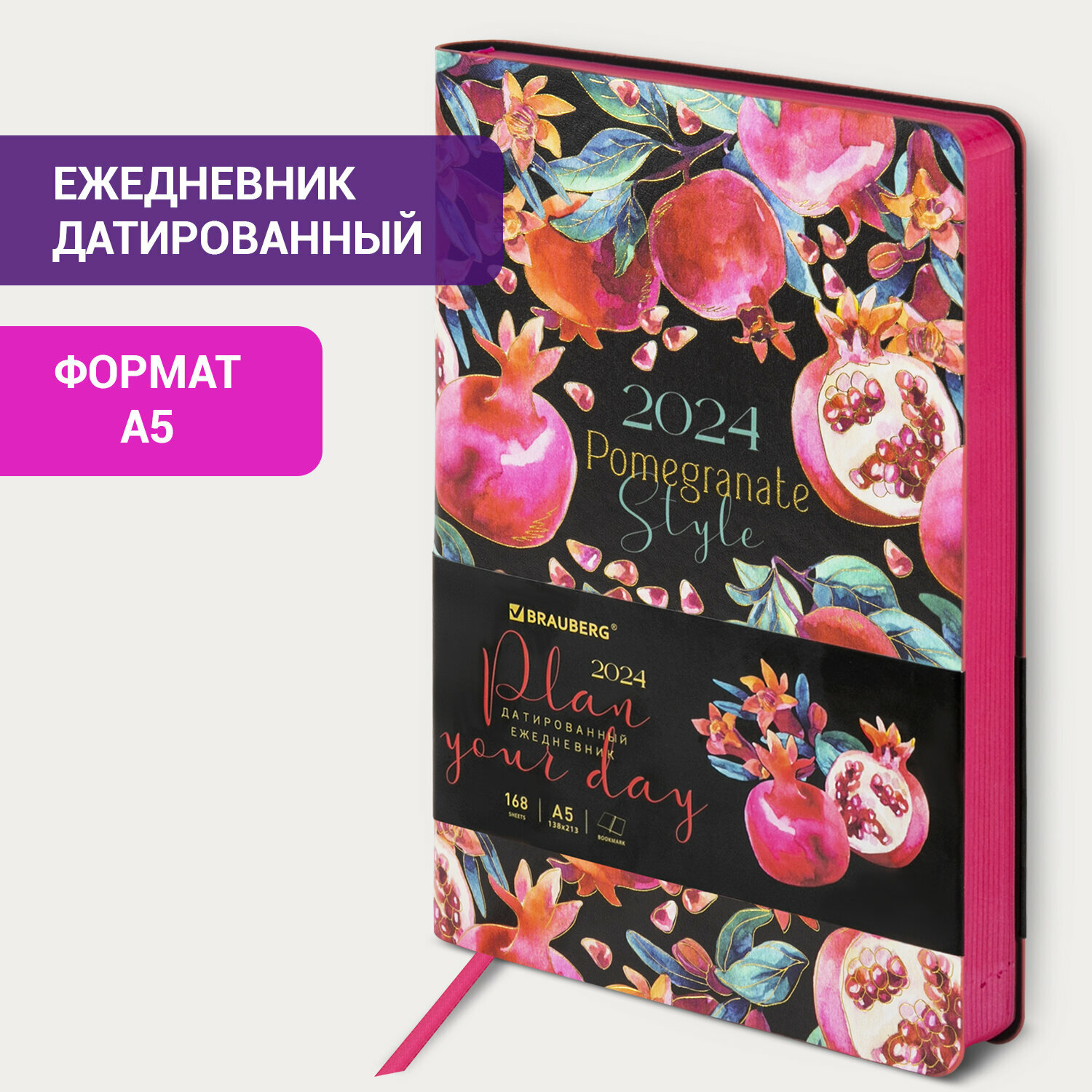Ежедневники Ежедневник датированный 2024 А5 138x213 мм BRAUBERG "Vista", под кожу, "Pomegranate", 114946
