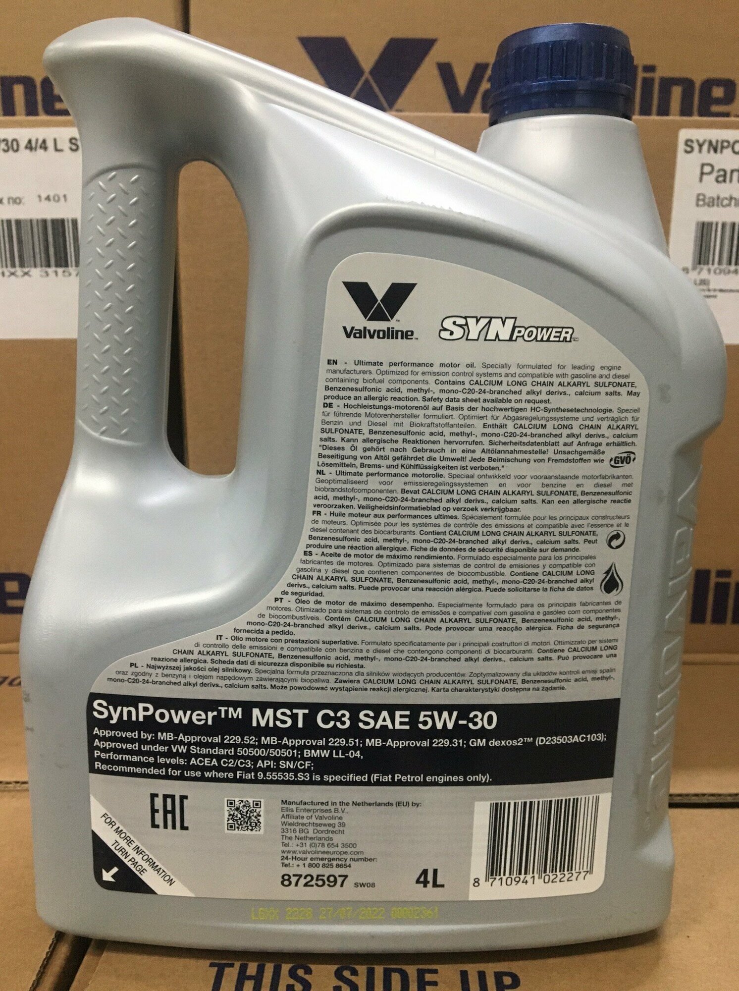 Synpower MST С3 SAE 5w30 4л Valvoline 872597 синт