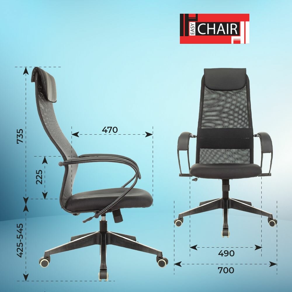 Кресло компьютерное для руководителей Easy Chair 655 TTW, офисный стул на колесиках, с подголовником, искусственная кожа/сетка, черный/синий 11 896 ₽ Подробнее