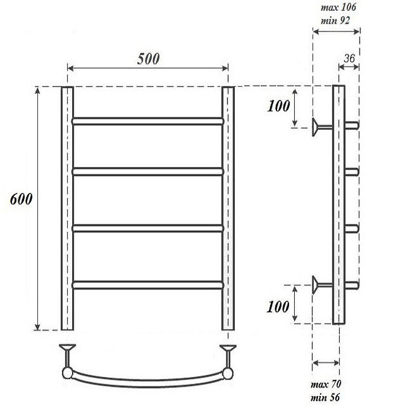 Полотенцесушитель водяной 500x600 POINT Афина (PN04156 П4)