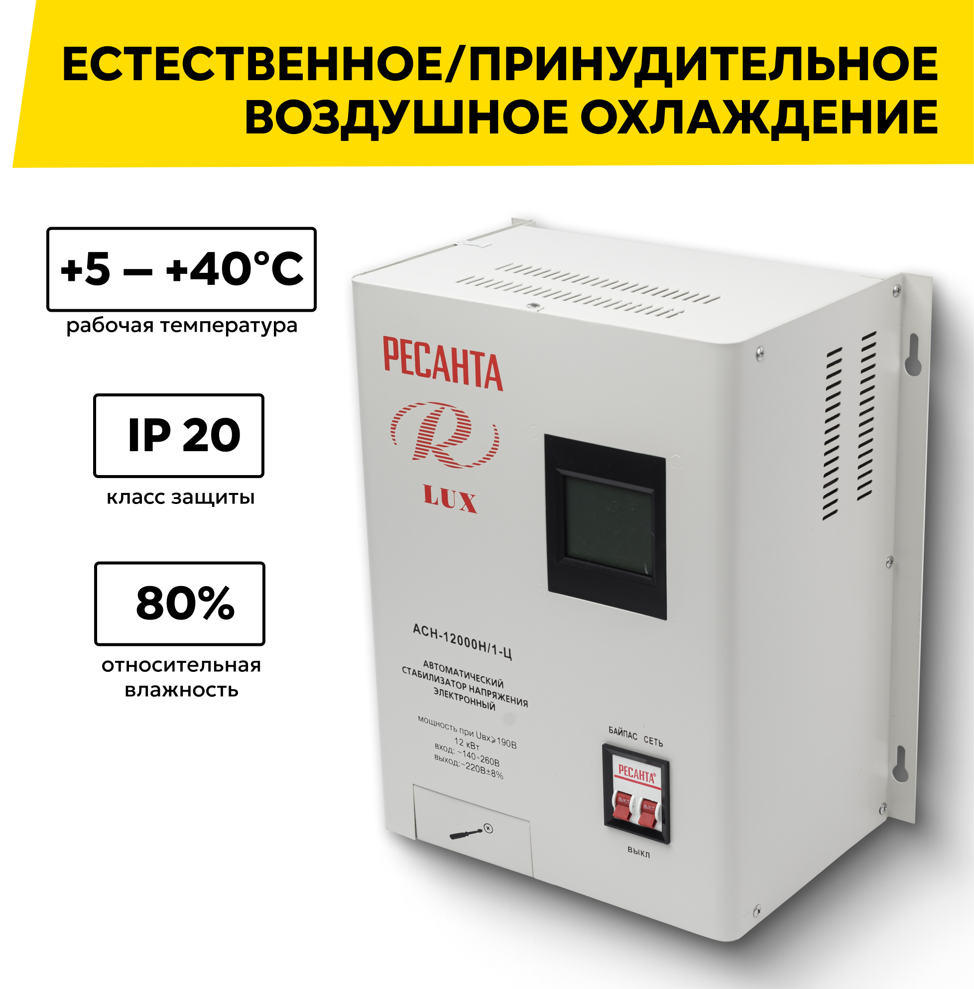 Стабилизаторы напряжения Стабилизатор напряжения серии LUX РЕСАНТА АСН-12000Н/1-Ц, 12 кВт, настенный