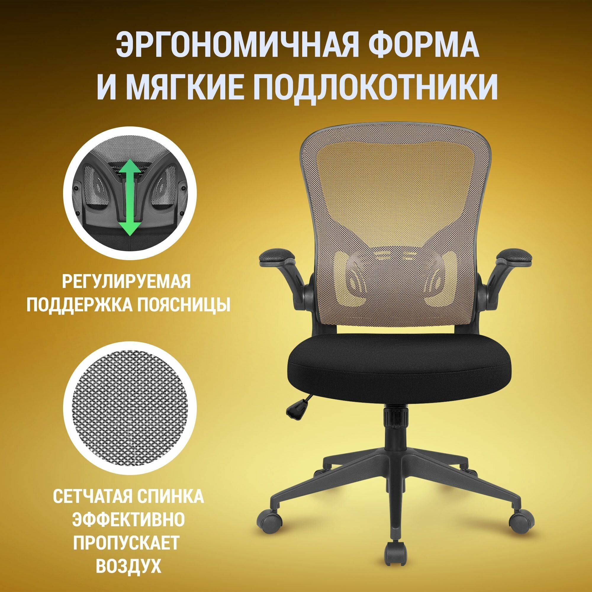 Кресло офисное Стул офисный Компьютерное кресло Defender Akvilon, черный, сетка, регулируемые подлокотники