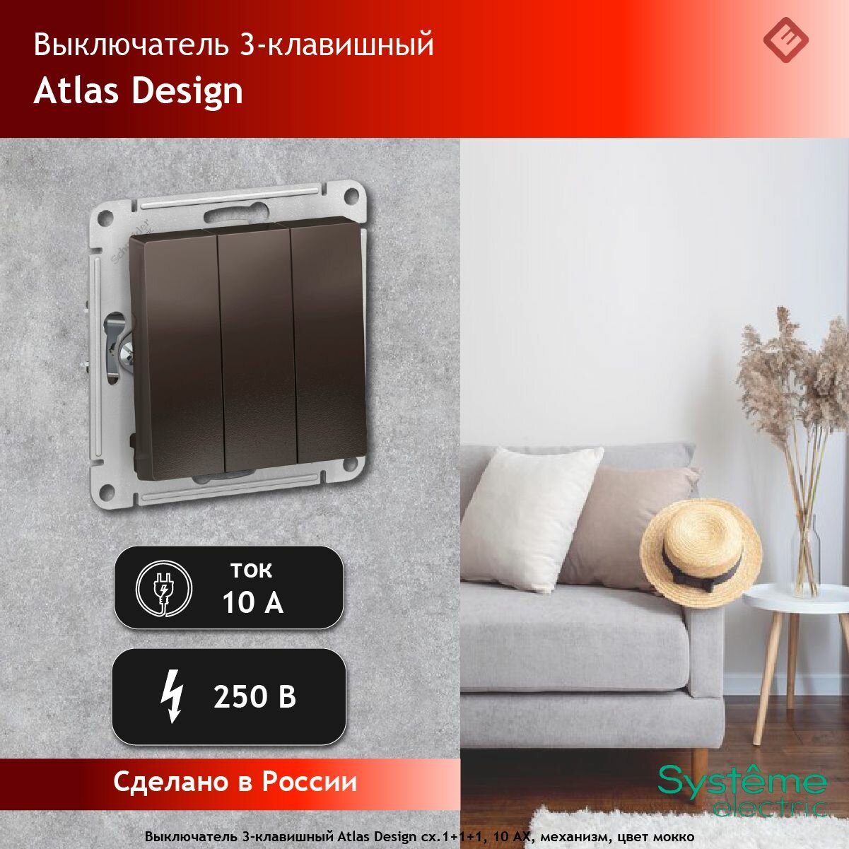 Выключатели SE AtlasDesign Мокко Выключатель 3-клавишный сх.1+1+1, 10АХ, механизм