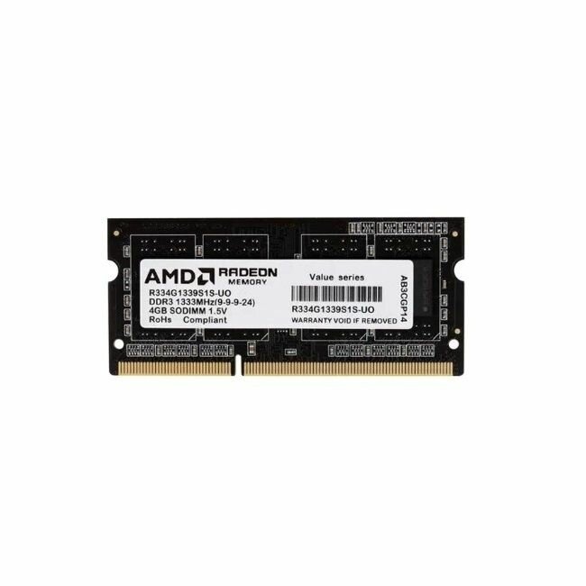 Оперативная память AMD Модуль оперативной памяти SO-DIMM 4ГБ DDR3 SDRAM AMD Radeon R3 Value R334G1339S1S-UO (PC10600, 1333МГц, CL9) (oem)