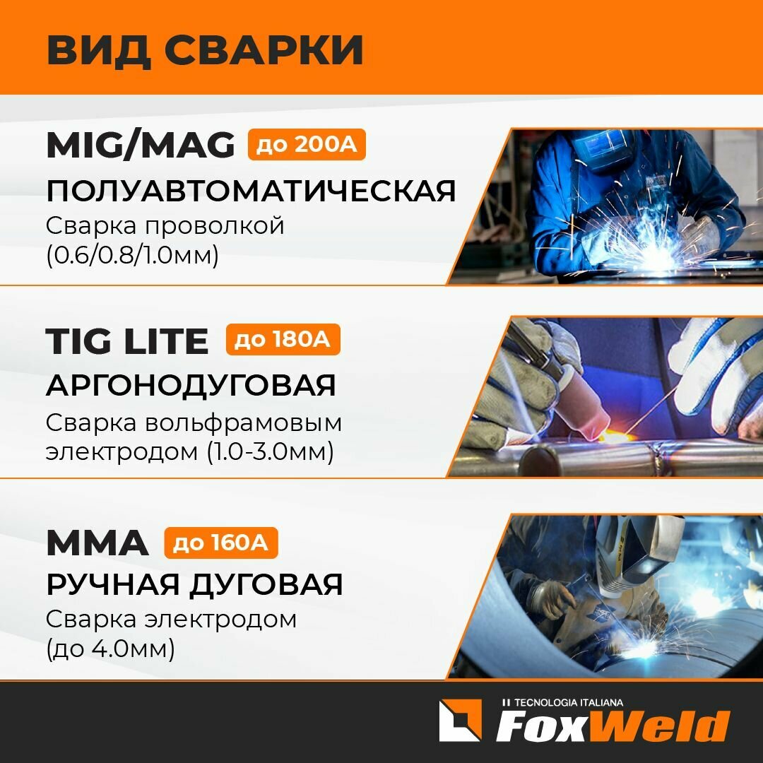 Сварочный аппарат инверторного типа FoxWeld InverMIG 205, TIG, MMA, MIG/MAG