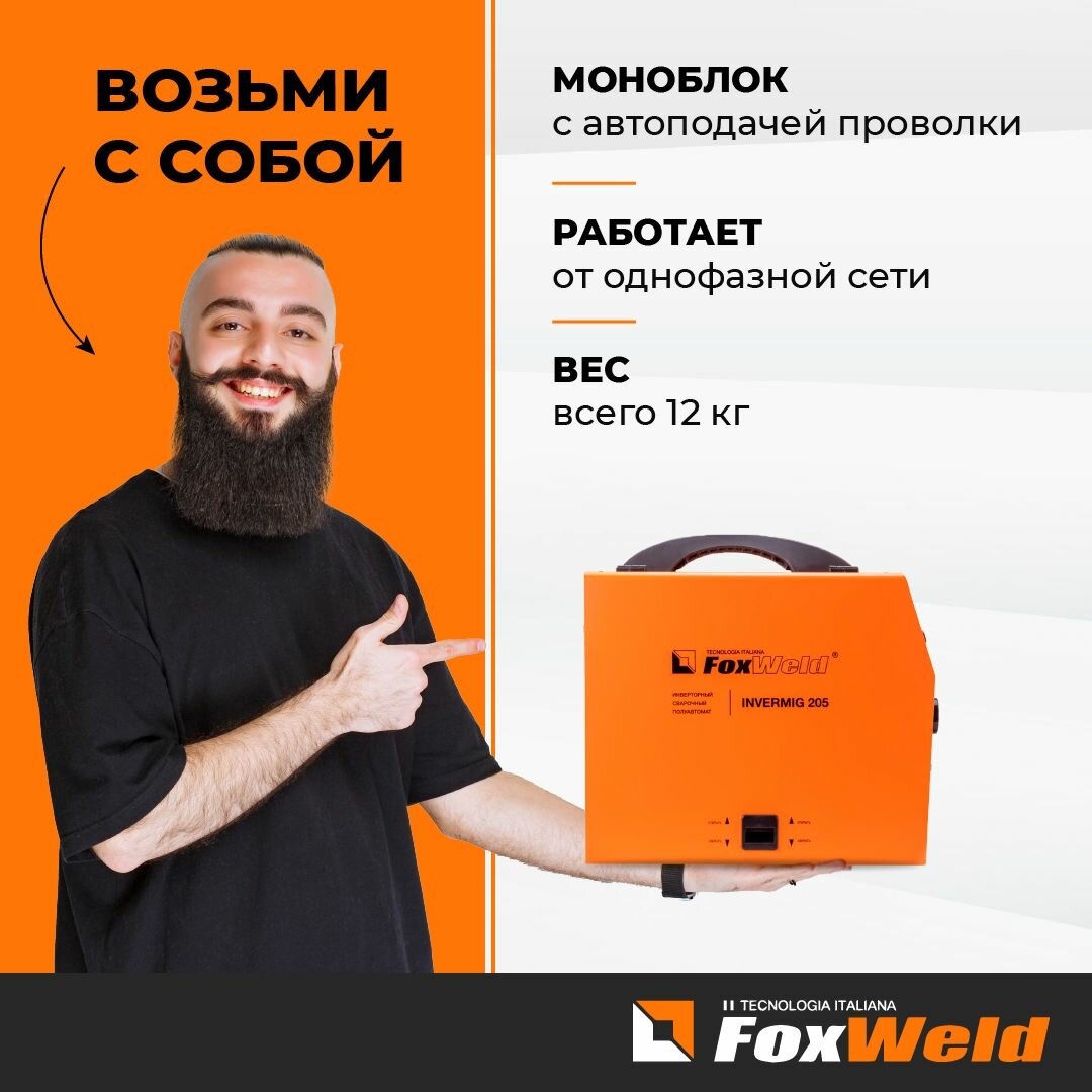Сварочные аппараты Foxweld Сварочный полуавтомат Invermig 205 полуавтоматический инверторный mig mag, сварка без газа, с газом, варит электродом, LIFT TIG