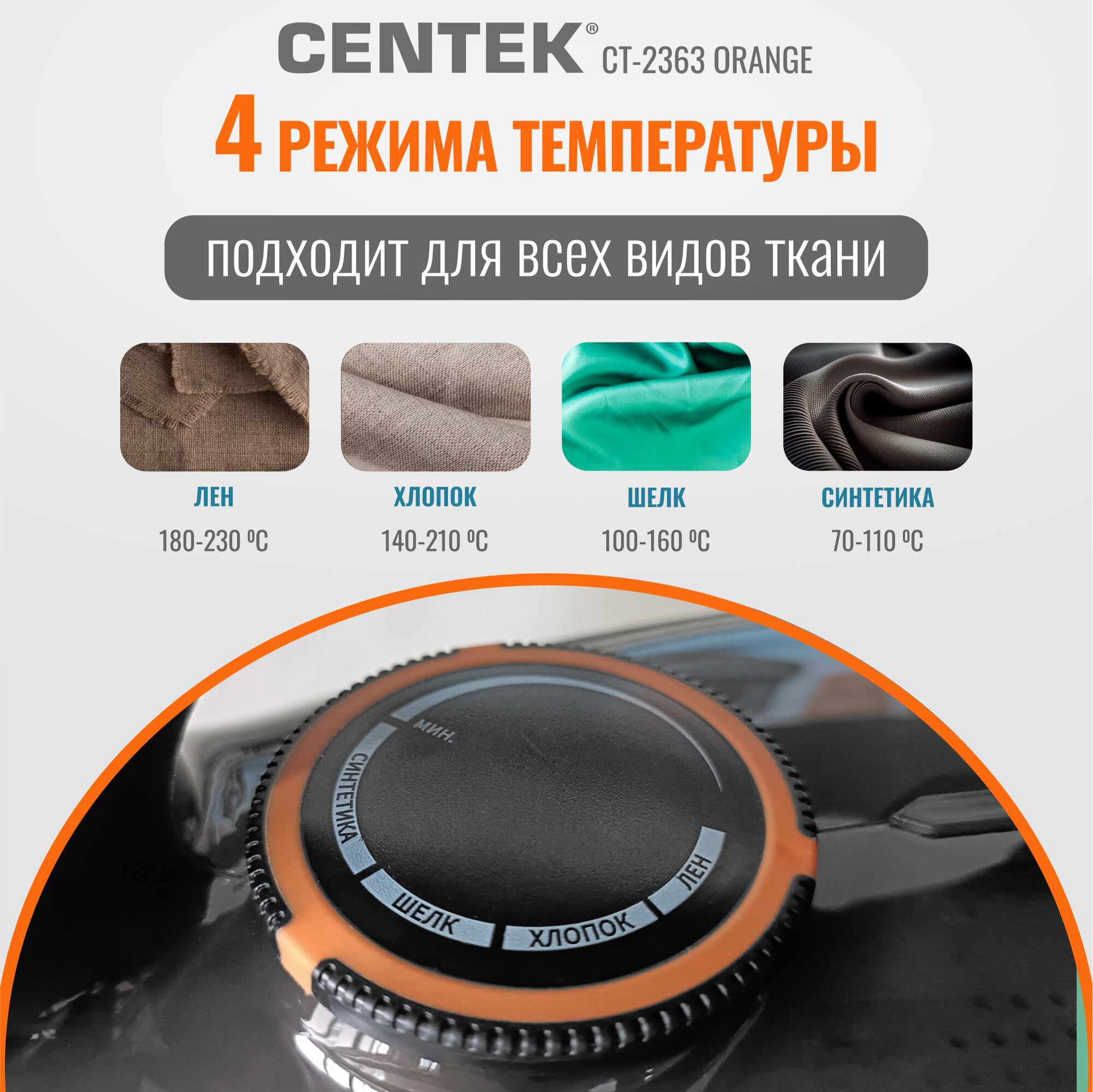 Утюг CENTEK CT-2363 ORANGE/ 2200 Вт/ керамическая подошва/ 300 мл