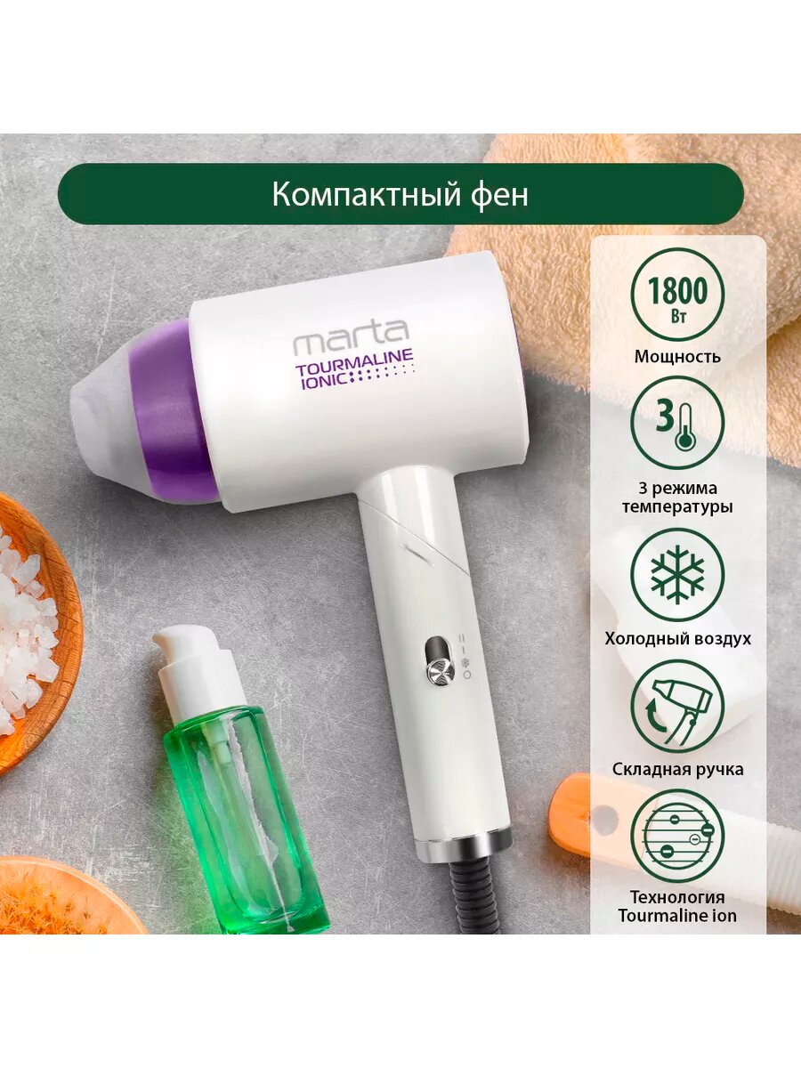 Фен MARTA MT-1267 Технология tourmaline ionic белый коралл 965 ₽ Подробнее