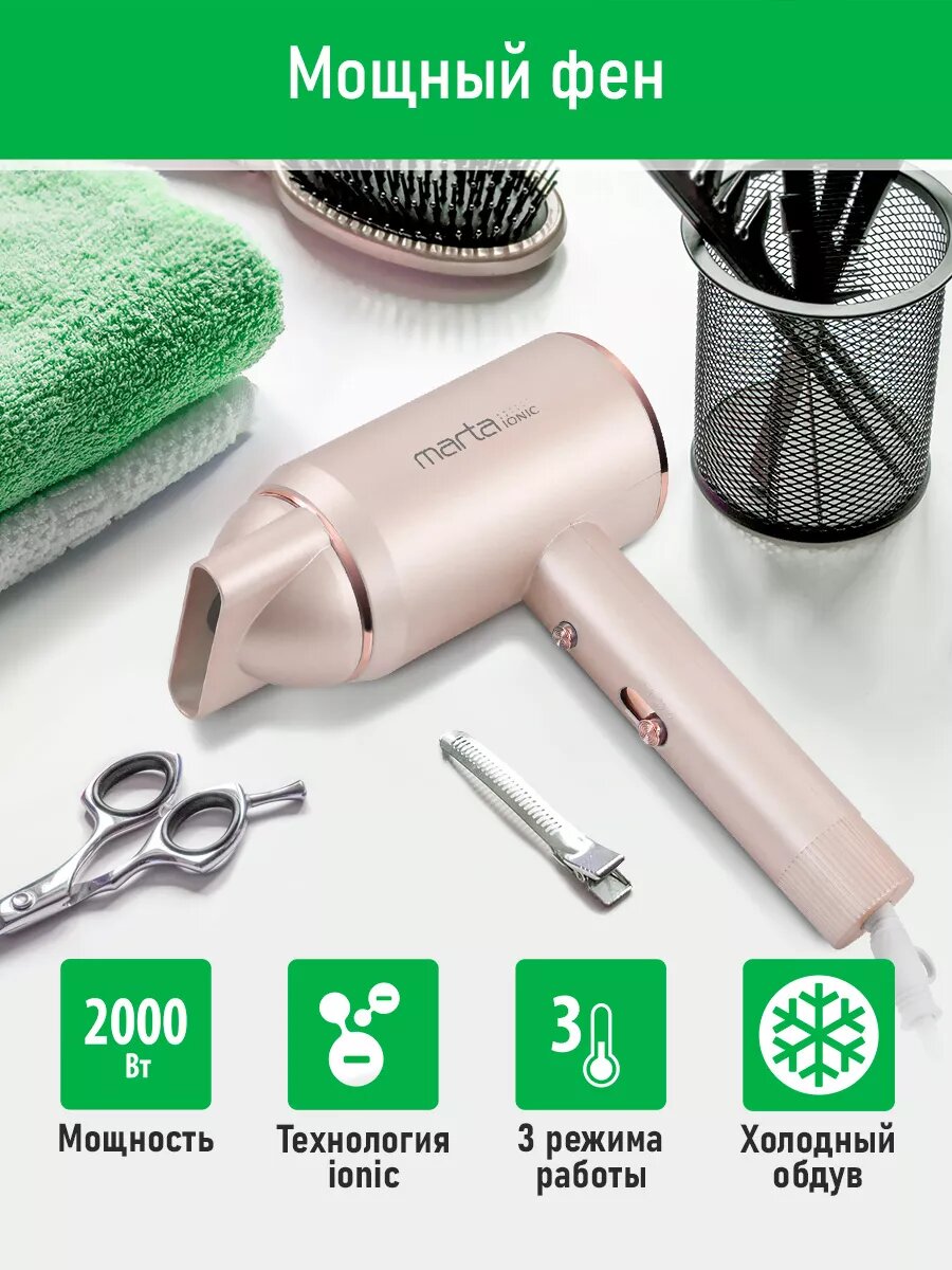 Фен MARTA MT-HD1408B розовый опал 1 355 ₽ Подробнее