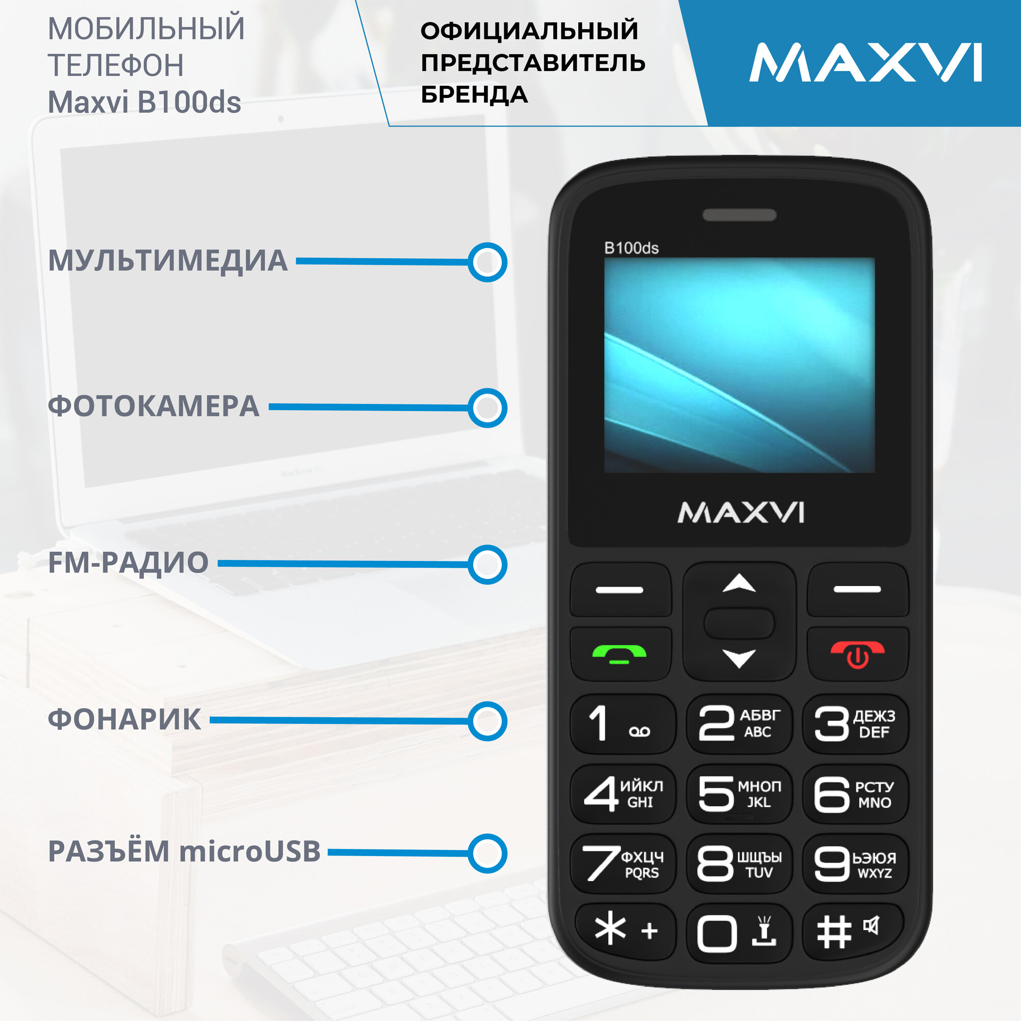 Телефон MAXVI B100DS, 2 SIM, синий