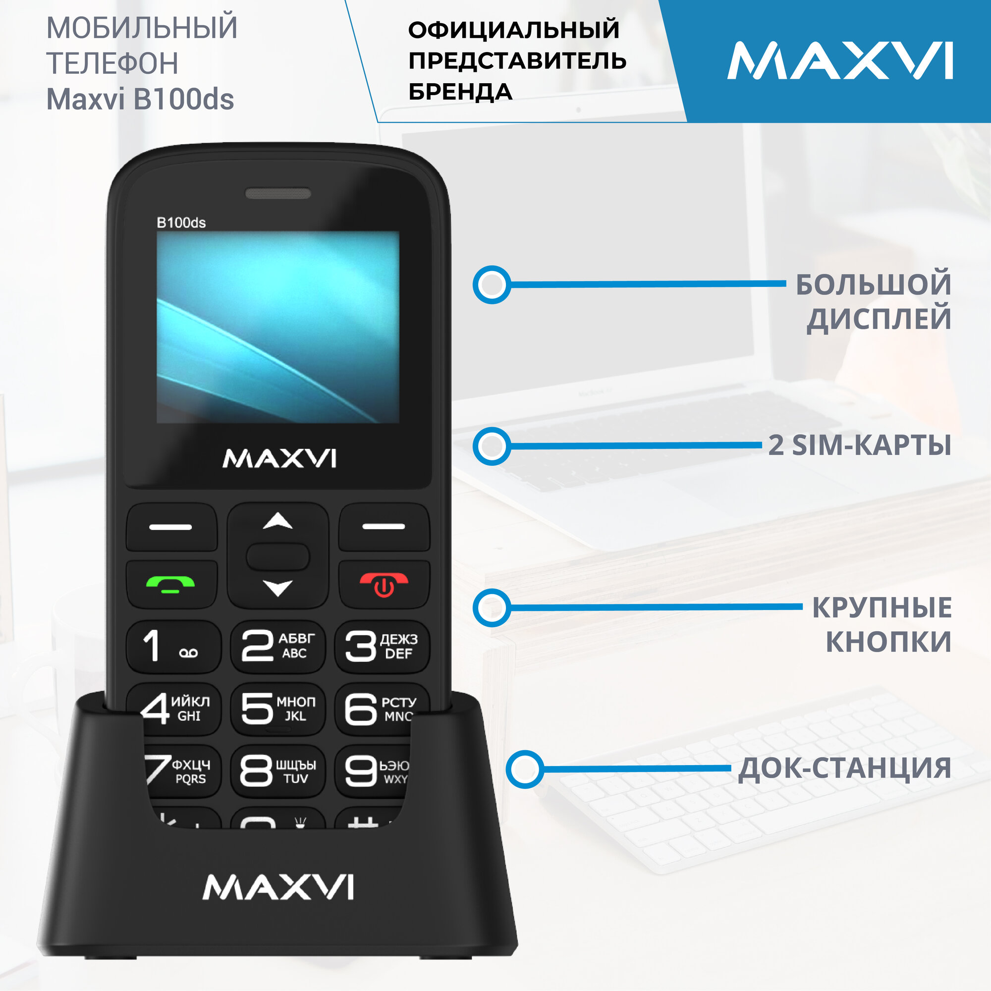 Мобильный телефон (MAXVI B100DS BLACK) 1 407 ₽ Подробнее