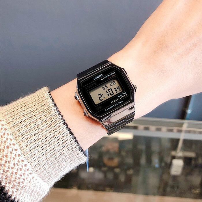 A168WEGG-1A Casio наручные часы кварцевые WR30 (3 атм) мужские, женские черный секундомер будильник отображение числа, отображение дня недели, отображение месяца подсветка дисплея акриловое стекло