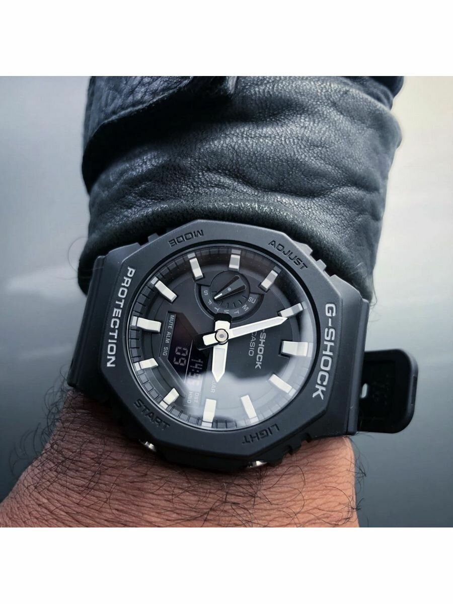 Наручные часы CASIO G-Shock GA-2100 мужские, кварцевые, будильник, хронограф, секундомер, таймер обратного отсчета, водонепроницаемые, противоударные, подсветка стрелок, подсветка дисплея, черный