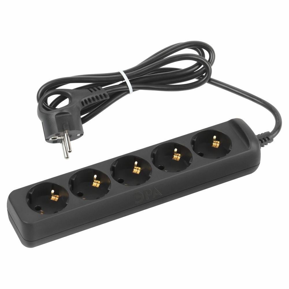 Удлинитель электрический UX-5e-1.5m-B с заземлением 5 розеток 1.5м ПВС 3х0.75кв.мм 10А черн. | код. Б0057724 | Эра ( 1шт. )