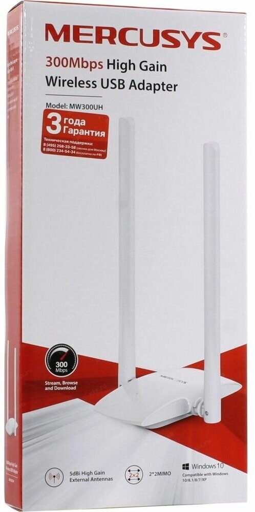 Адаптер Mercusys MW300UH N300 USB адаптер высокого усиления, две 5 дБи высокочувствительные антенны