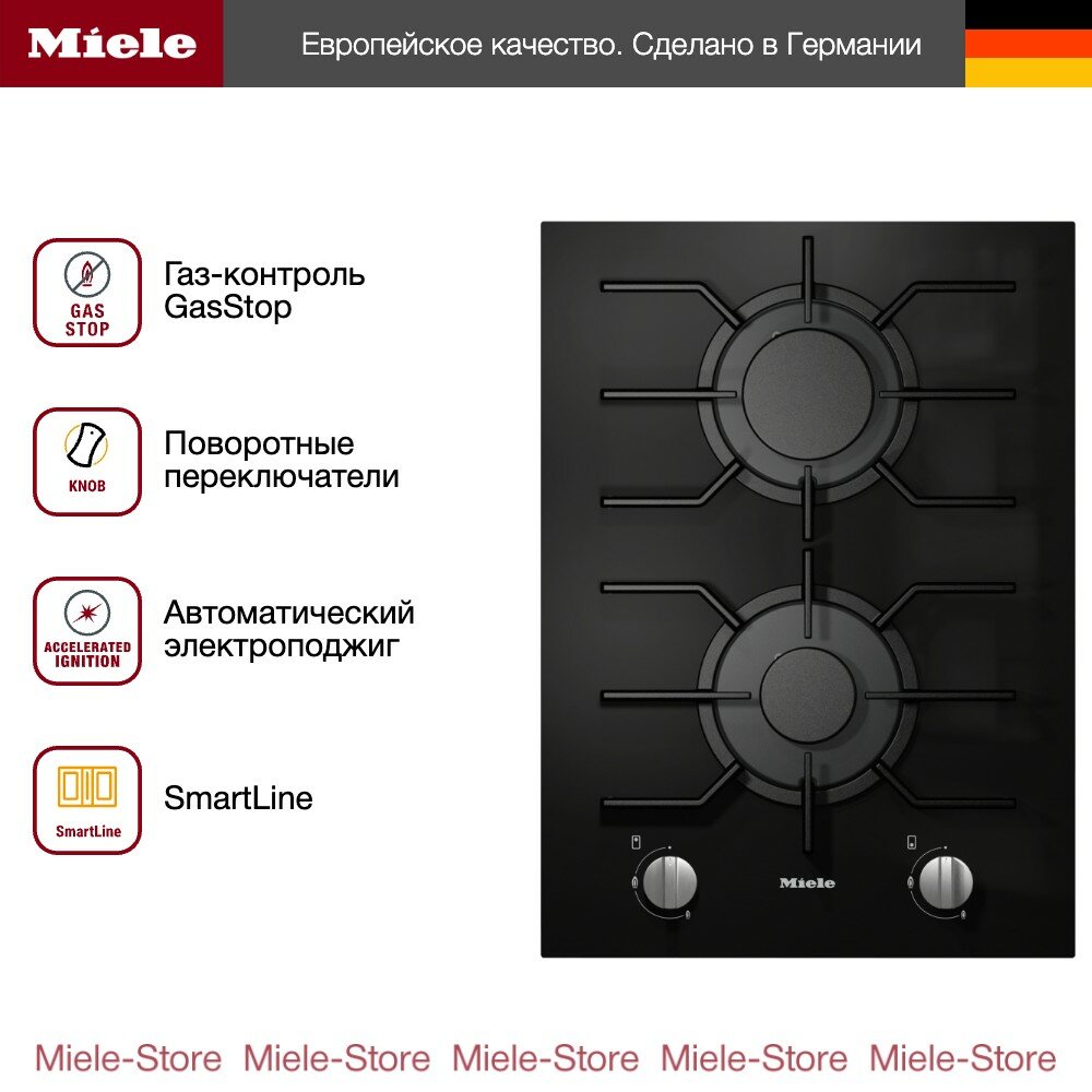 Плиты Встраиваемая газовая варочная панель Miele CS7102-1 FL, конфорок - 2, стеклокерамика, электроподжиг, газ-контроль
