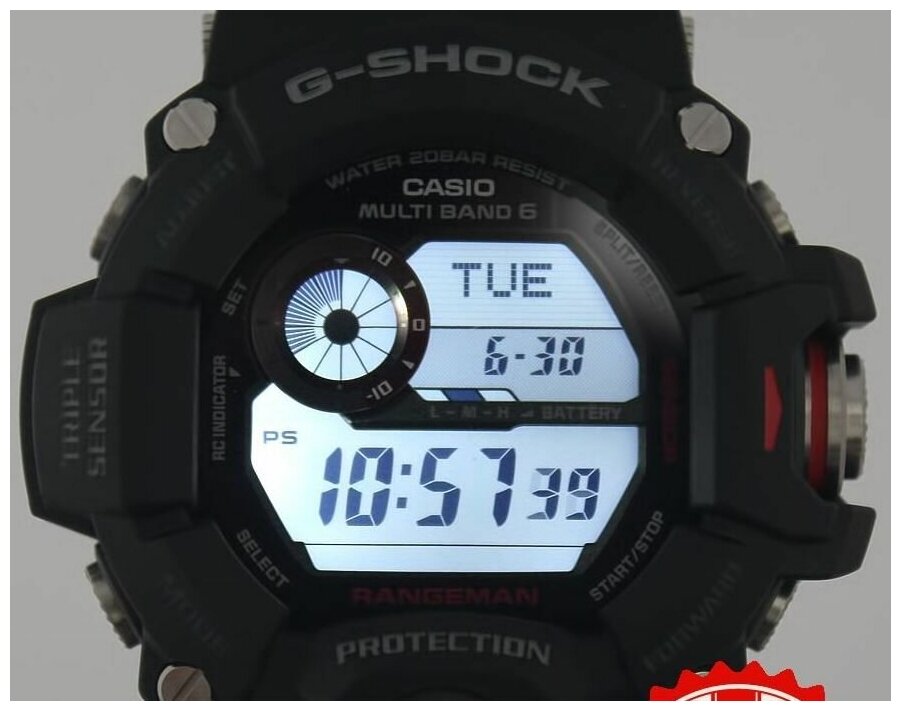 | Функции и возможности | будильник (5 шт) / секундомер / таймер / день недели / дата (число месяца) / дата (месяц года) / мировое время(31 часовой пояс) / компас(0 — 359°) / альтиметр (высотомер)(-700 — 10000 м) / термометр(-10 — 60℃) / барометр(260 — 1100 гПа) / синхронизация по радиоканалу |