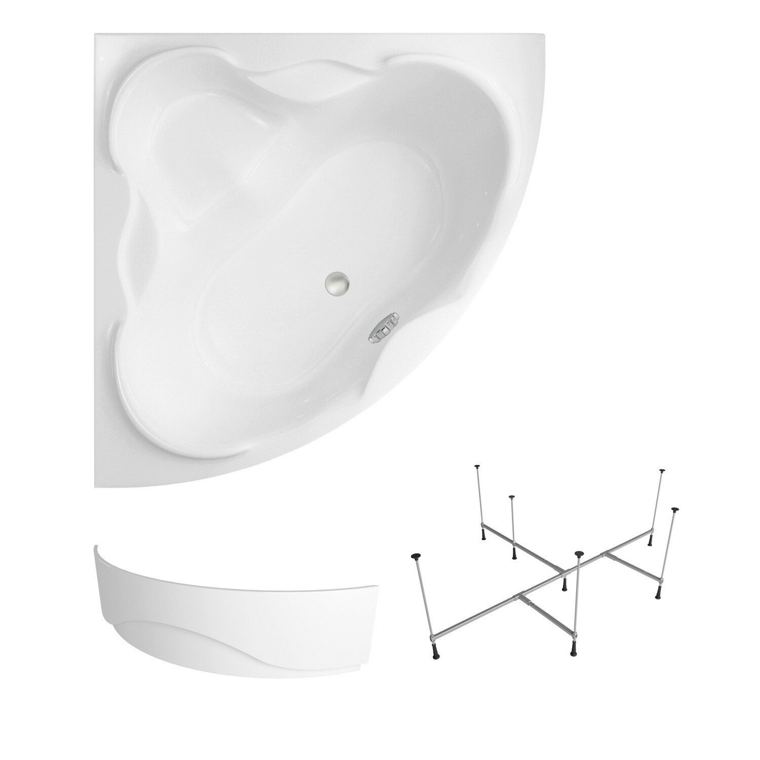 Ванна угловая акриловая 140 х 140 с каркасом Lavinia Boho Elegant S1-37050140 в наборе 2 в 1: угловая ванна 140х140 см, усиленный металлический каркас