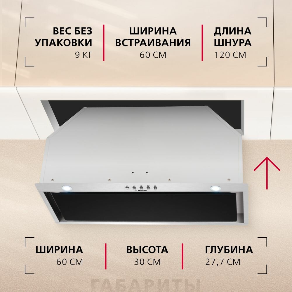 Вытяжка кухонная встраиваемая в подвесной шкаф Hansa / Ханса OMP6242BIH металл серый 2 режима 3 скорости 59Дб 500м3/ч / вытяжная система вентиляции