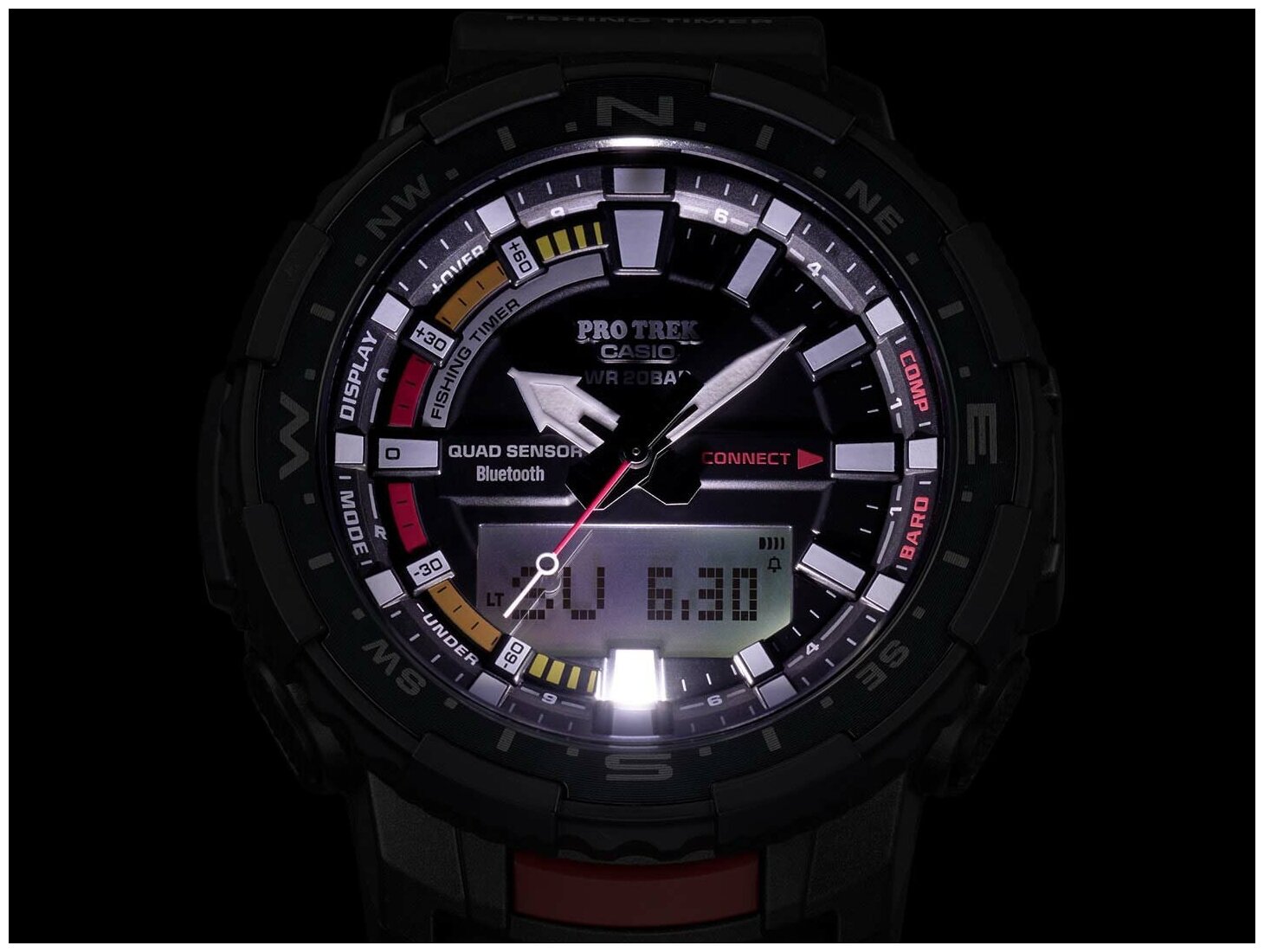 Наручные часы CASIO Pro Trek PRT-B70-1E память, термометр, шагомер, барометр, компас, альтиметр, секундомер.мые, подсветка стрелок, подсветка.