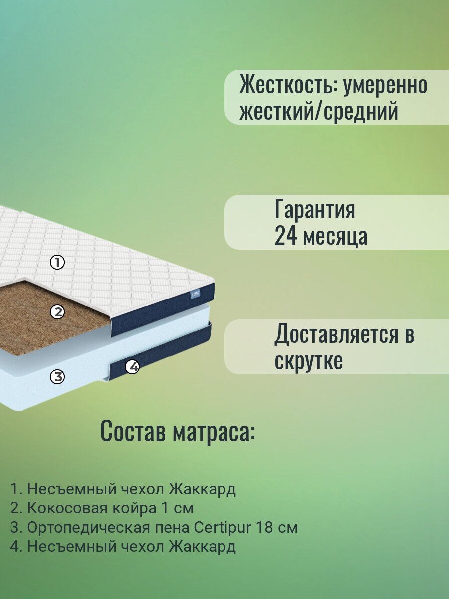 Матрас Практик чип ролл 18 кокос 80х160 9 173 ₽ Подробнее