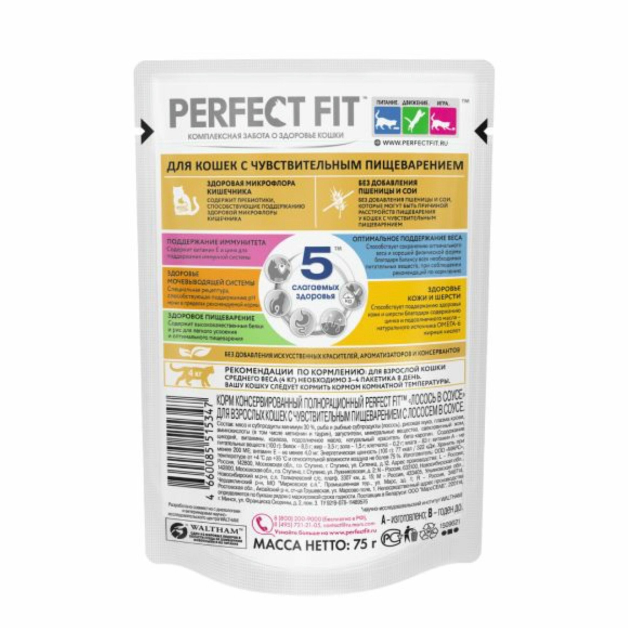 Корм для кошек Корм влажный Перфект фит для кошек с Чувствительным пищеварением Лосось в соусе 10 шт