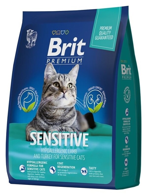 Корм Brit Premium Cat Sensitive для взрослых кошек с чувствительным пищеварением, с ягненком и индейкой 2 кг