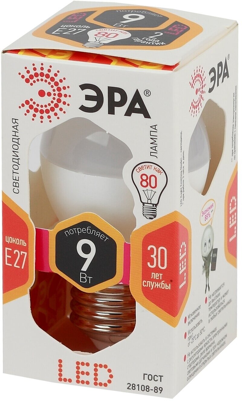 Лампа светодиодная ЭРА Б0029043, E27, P45, 9 Вт, 2700 К