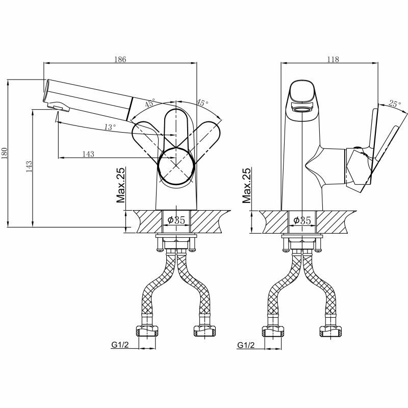 D&K Смеситель для раковины D&K Rhein Marx DA1392141 Хром