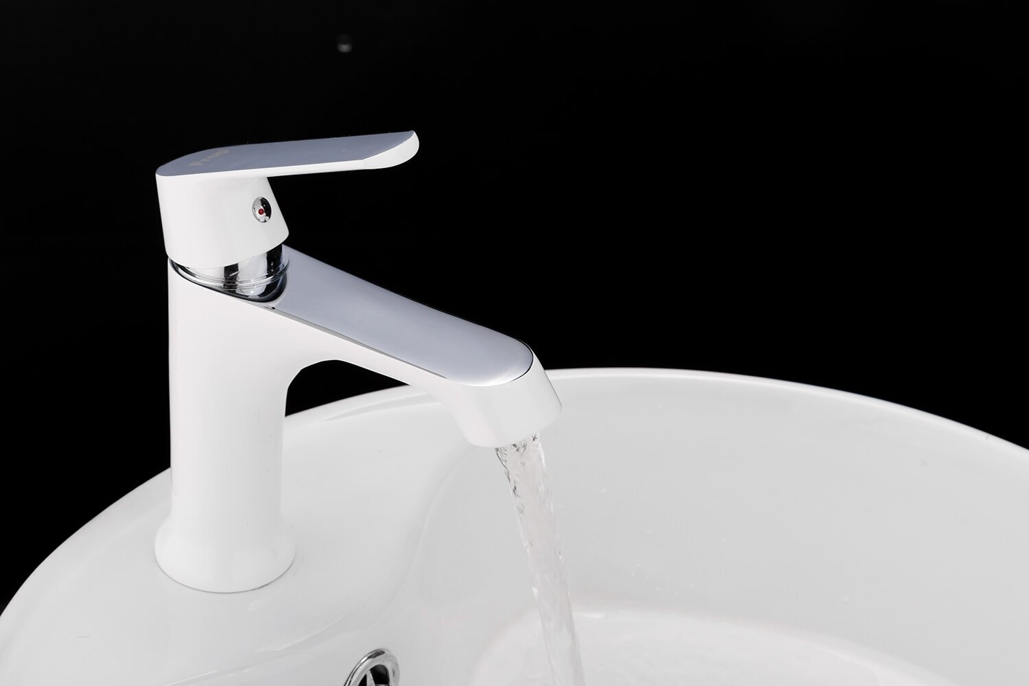 Смеситель для умывальника Frap F1031 с коротким изливом, белый/хром