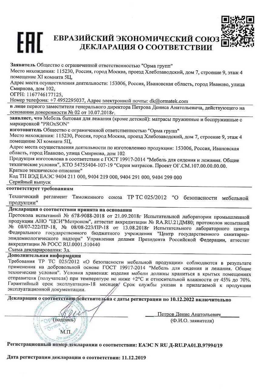 Матрас Proson Base Flex M 120х190 10 080 ₽ Подробнее