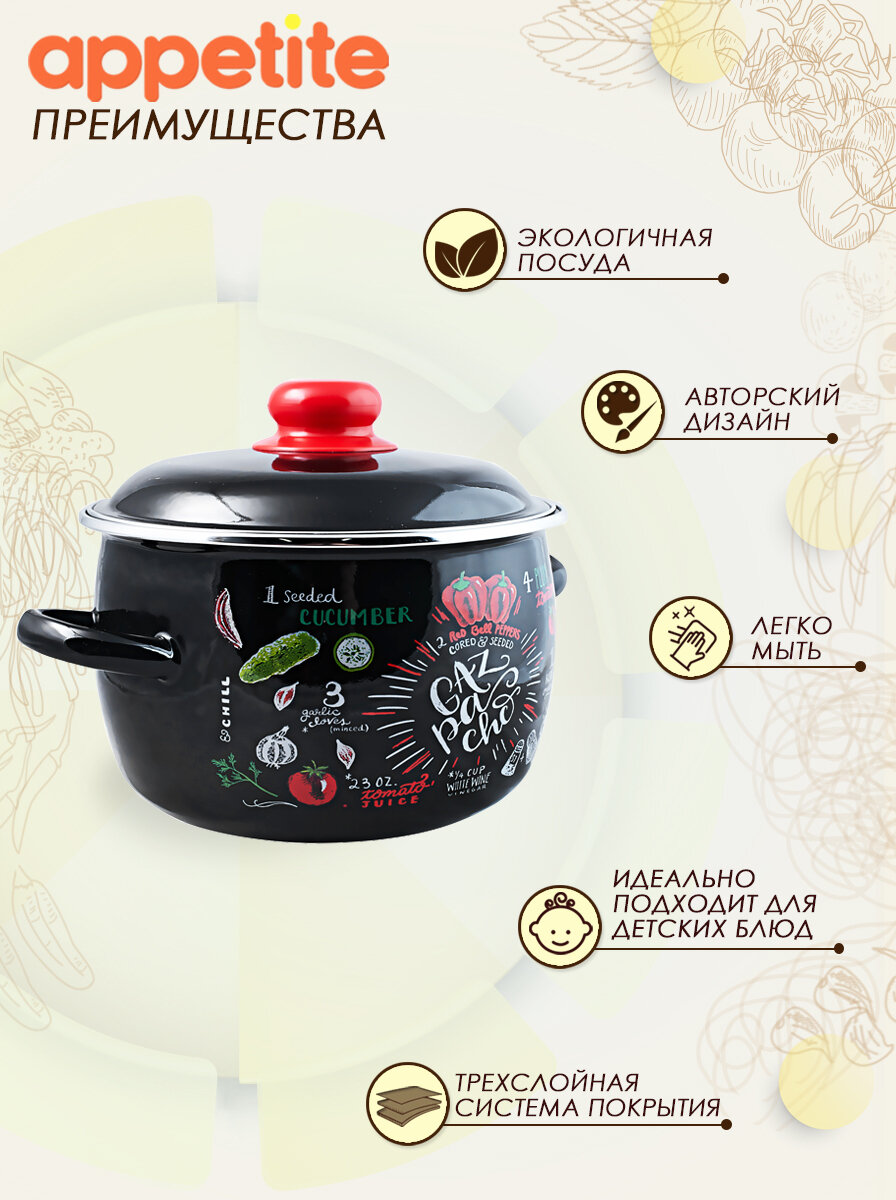 Кастрюля Кастрюля эмалированная с крышкой Gazpacho 2,0л ТМ Appetite