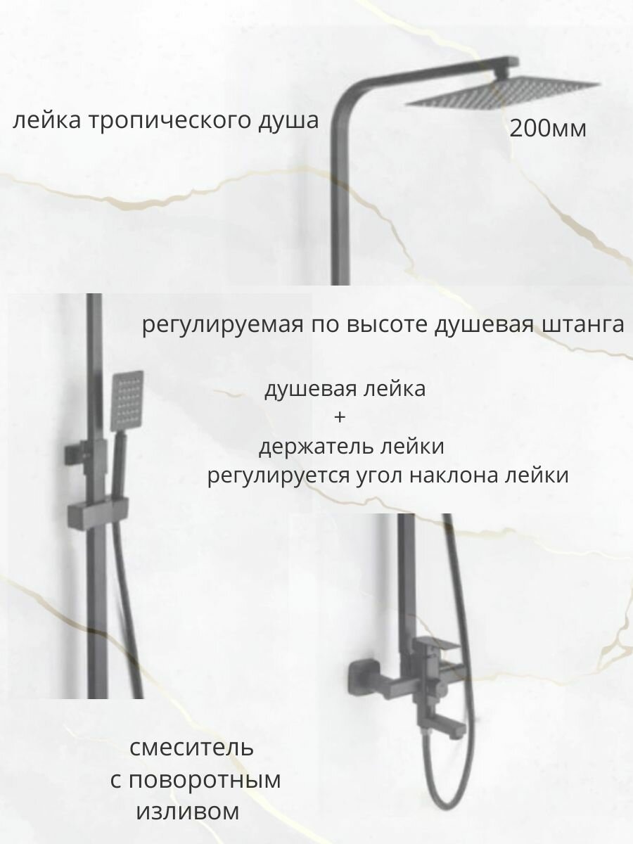 Душевая система с тропическим душем Haiba HB23803-7, цвет-черный/матовый 17 327 ₽ Подробнее