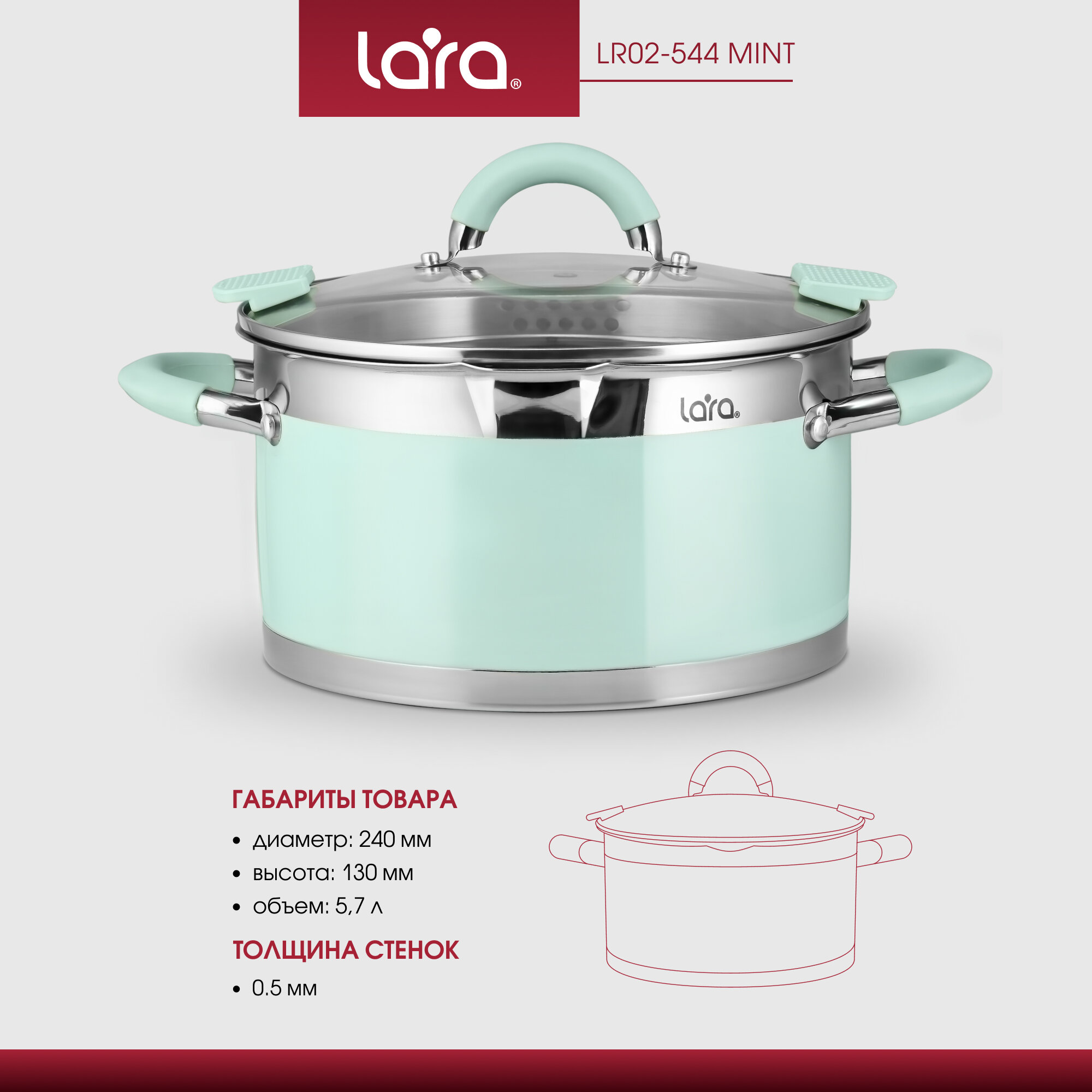 LARA Кастрюля LARA LR02-542 MINT