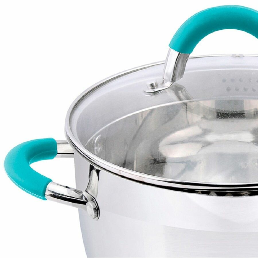 Кастрюля Bravo, объем 2,9 л, из нерж стали с крышкой из жаропрочного стекла, размер 18*11,5 см .
