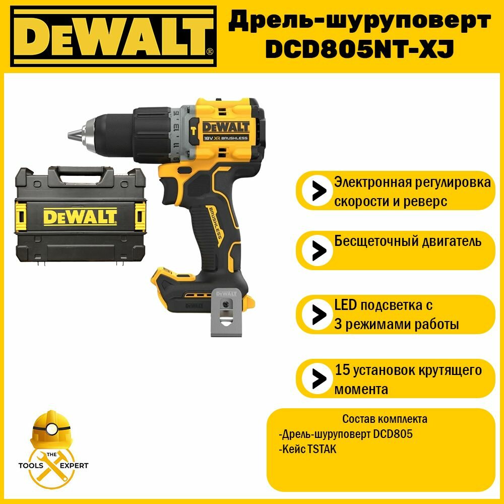 Аккумуляторная ударная бесщеточная дрель-шуруповерт DEWALT DCD805P2T, 18 В, 2 акб 5Ач