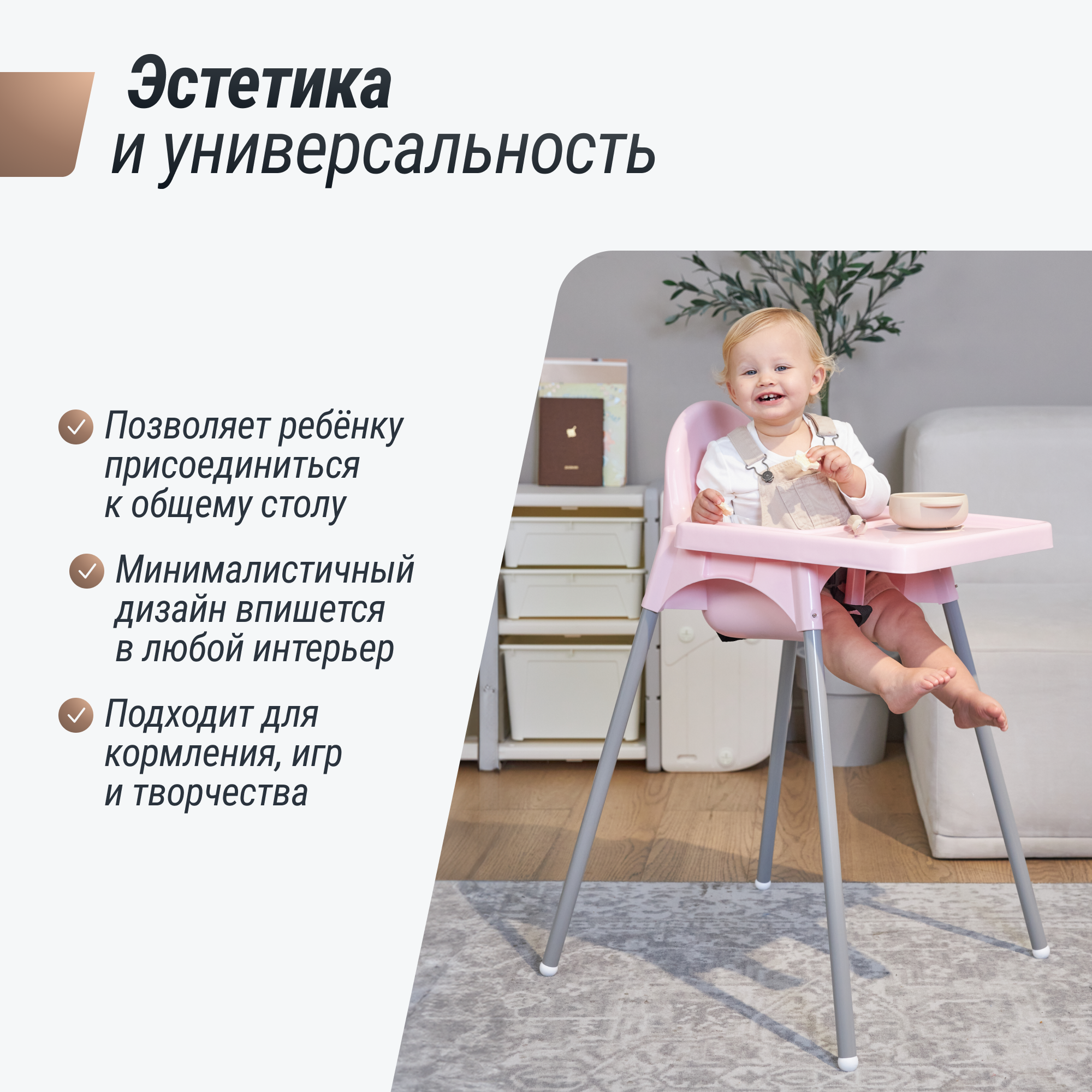 Стульчик для кормления UNIX Kids Fixed Rose - аналог икеа, для кормления ребенка, съемный столик, из пластика, ремень безопасности, цвет розовый
