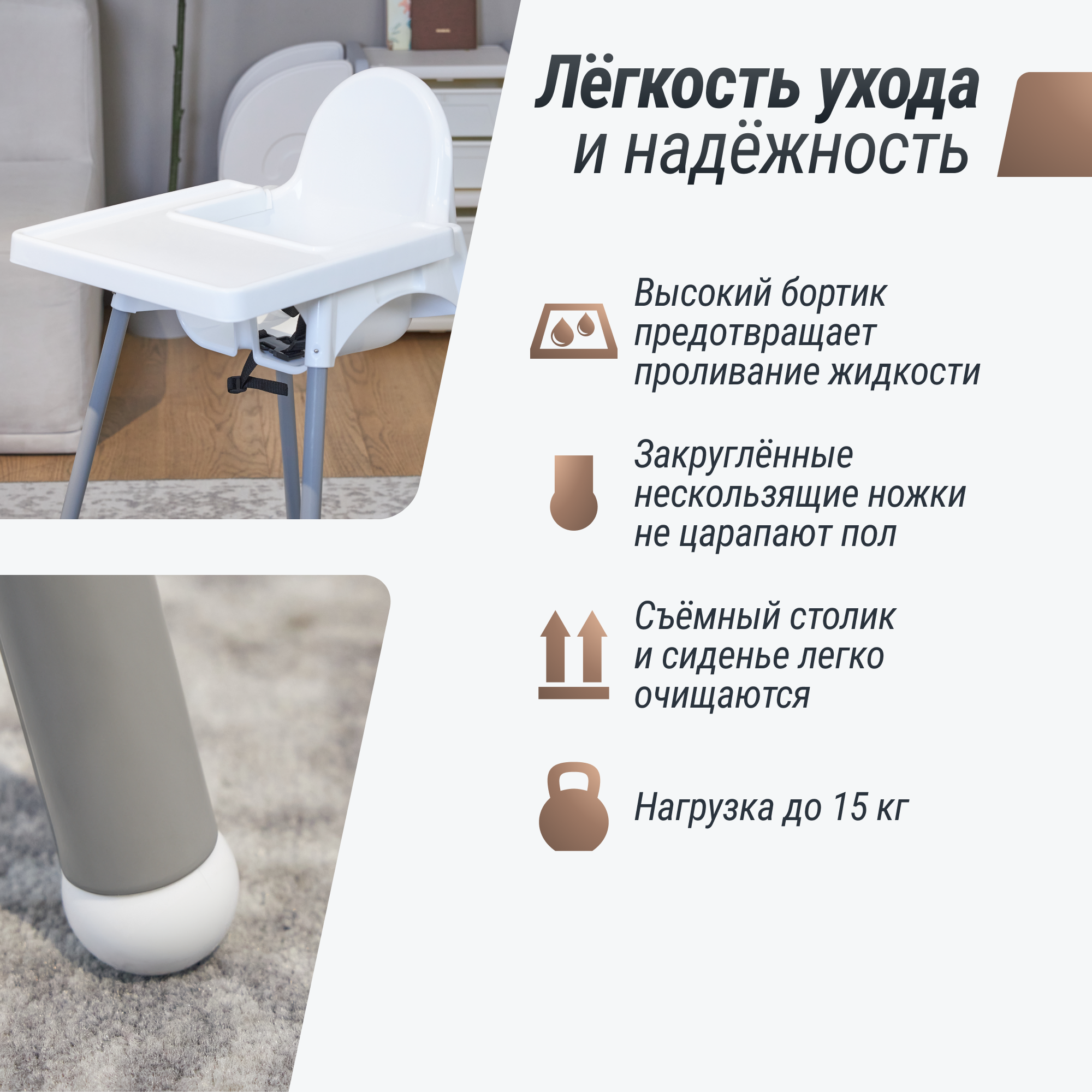 Стул для кормления ребенка UNIX Kids Fixed White, аналог икеа, съемный столик, ремень безопасности, пластик, белый